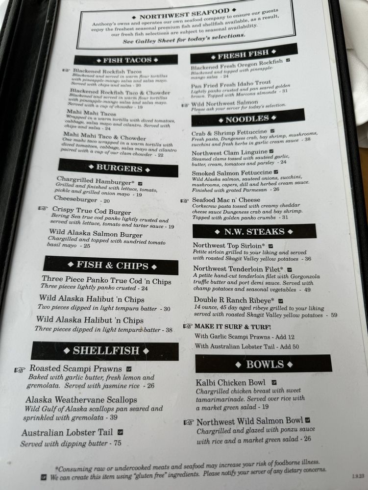 Anthony's, located in Tacoma, offers a delightful seafood dining experience with stunning waterfront views. Customers rave about the fresh seafood, including exquisite oysters and perfectly executed halibut. The attentive and knowledgeable staff are passionate about the dishes they serve, ensuring a memorable dining experience. The menu boasts a variety of options, from garlic prawn scampi to salmon burgers, catering to both seafood lovers and those seeking vegan or vegetarian options. With casual yet classy ambiance, full bar, and outdoor seating, Anthony's is perfect for groups, families, or a romantic meal. The restaurant also offers takeout, delivery, and catering services. If you appreciate the art of seafood and enjoy a picturesque setting, Anthony's is a culinary gem not to be missed in Tacoma.